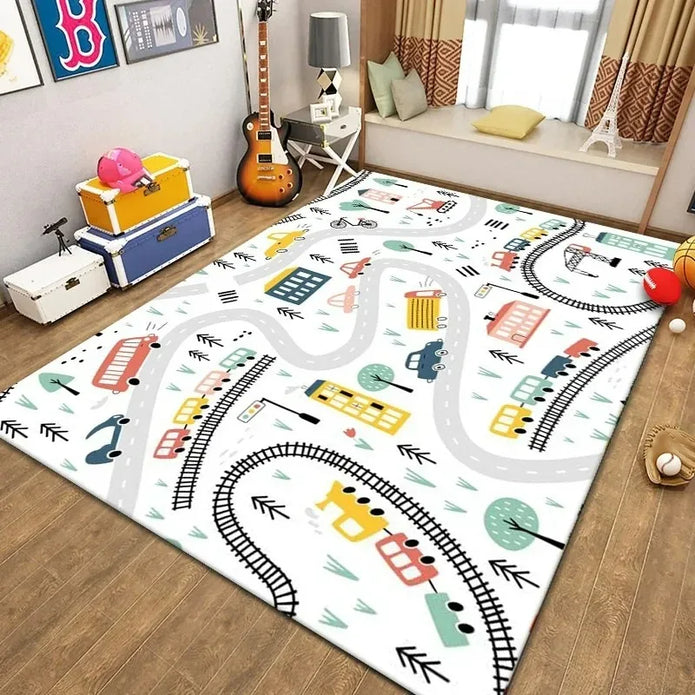 This large, cartoon-themed game carpet is designed specifically for children’s bedrooms and living areas, providing both fun and function. Crafted from 100% polyester with a non-slip backing, it ensures safety during play and crawling. Its modern Aubusson-inspired design brightens any space, while the durable machine-made construction allows for easy care by hand or machine wash. Versatile for home, hotel, or commercial use, this rectangular rug combines cheerful patterns with practical features, creating a comfortable and decorative area suitable for babies and toddlers. Manufactured in Mainland China, it offers a high-quality, chemical-free solution for lively, safe environments.
