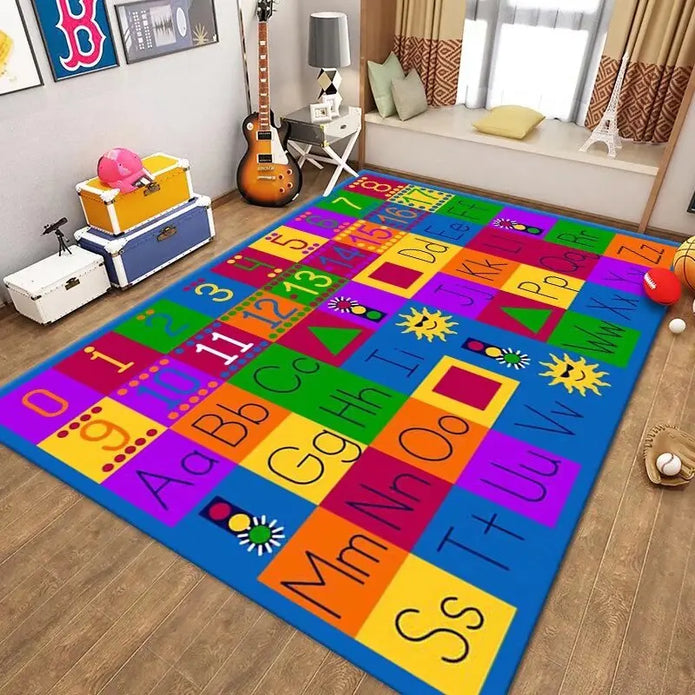This large, rectangular children's crawling mat features vibrant cartoon patterns designed to create a playful and inviting environment in any living room, bedroom, or play area. Made from 100% polyester with a Wilton machine-made technique, the mat offers durability and a smooth 3D printed design that resists fading. Its non-slip backing ensures safety, making it ideal for active children. The mat is fully machine washable for easy maintenance and free from harmful chemicals, ensuring a safe surface for babies and toddlers. Suitable for various rooms including hallways and lounges, this versatile rug combines practical safety with charming décor.