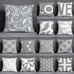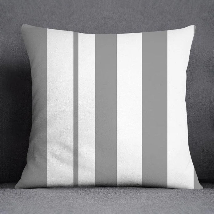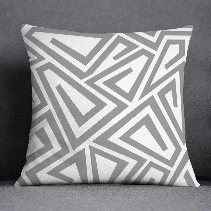 Gray White Geometric Cushion Cover – Modern Polyester Decorative Pillowcase for Sofa, Bed & Home Décor