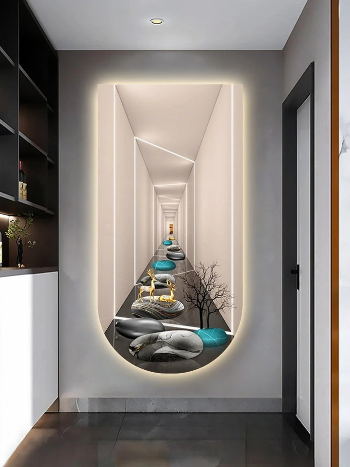 This light luxury wall painting combines abstract design with simplicity, ideal for enhancing corridors, living rooms, and entrances. Made from aluminum and featuring energy-efficient LED bulbs, it covers 15-30 square meters with a luminous flux between 2000 and 82000 lumens. It supports knob, remote, and touch controls but is not dimmable or smart. Certified for safety and quality, this self-contained, wall-mounted piece suits modern interiors, operating on 90-260V power and backed by a 3-year warranty. Customizable options are available to fit your space perfectly.