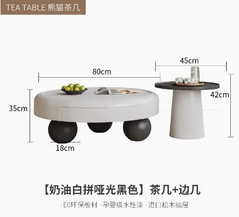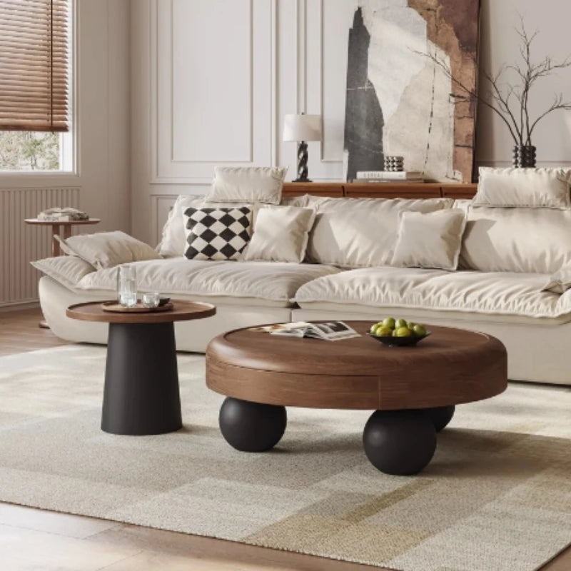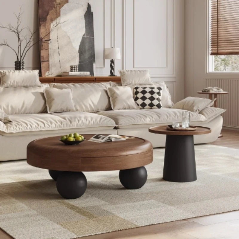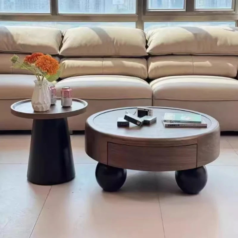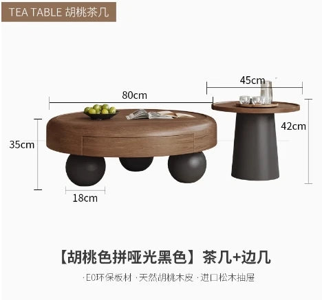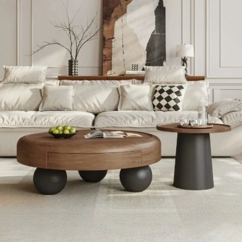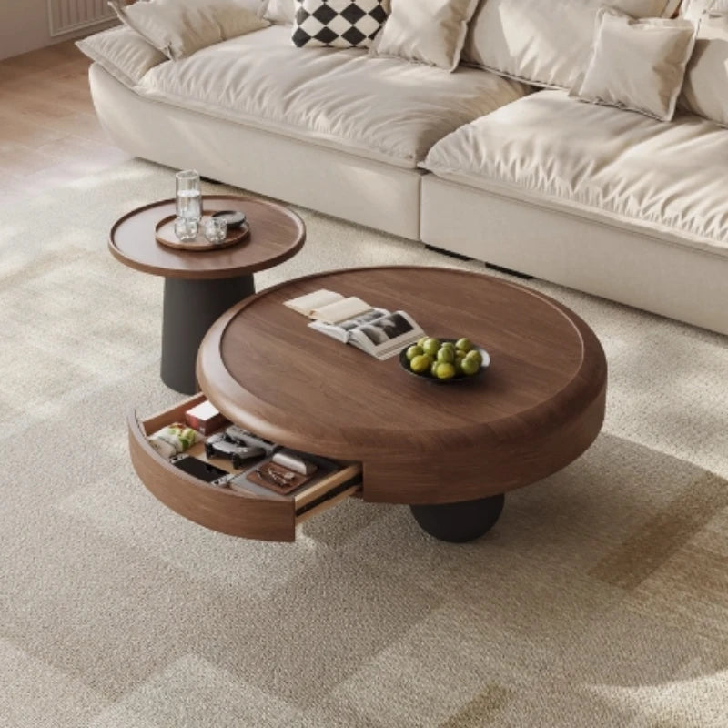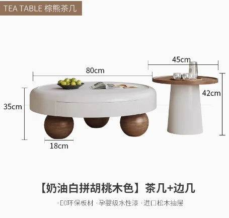 Modern Oval Coffee Table – Nordic Wooden Design with Double-Door Storage (0.8 x 0.8 x 0.35 m)