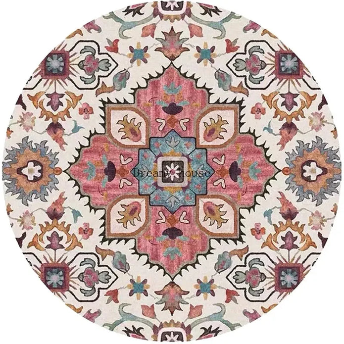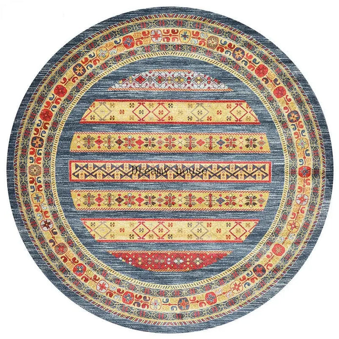 Elevate your home decor with this Retro Boho Round Carpet, expertly designed to blend Persian luxury with a modern geometric pattern. Crafted from 100% polyester, it offers durability and softness while being suitable for machine or hand washing for easy maintenance. Its anti-slip backing ensures safety across various settings, from living rooms and bedrooms to kitchens and even commercial spaces. The round shape and sophisticated design complement European and American styles, making it a versatile piece for lounges, corridors, prayer areas, or bathrooms. This customizable, machine-made rug adds warmth and character to any room, perfectly balancing style and practicality.
